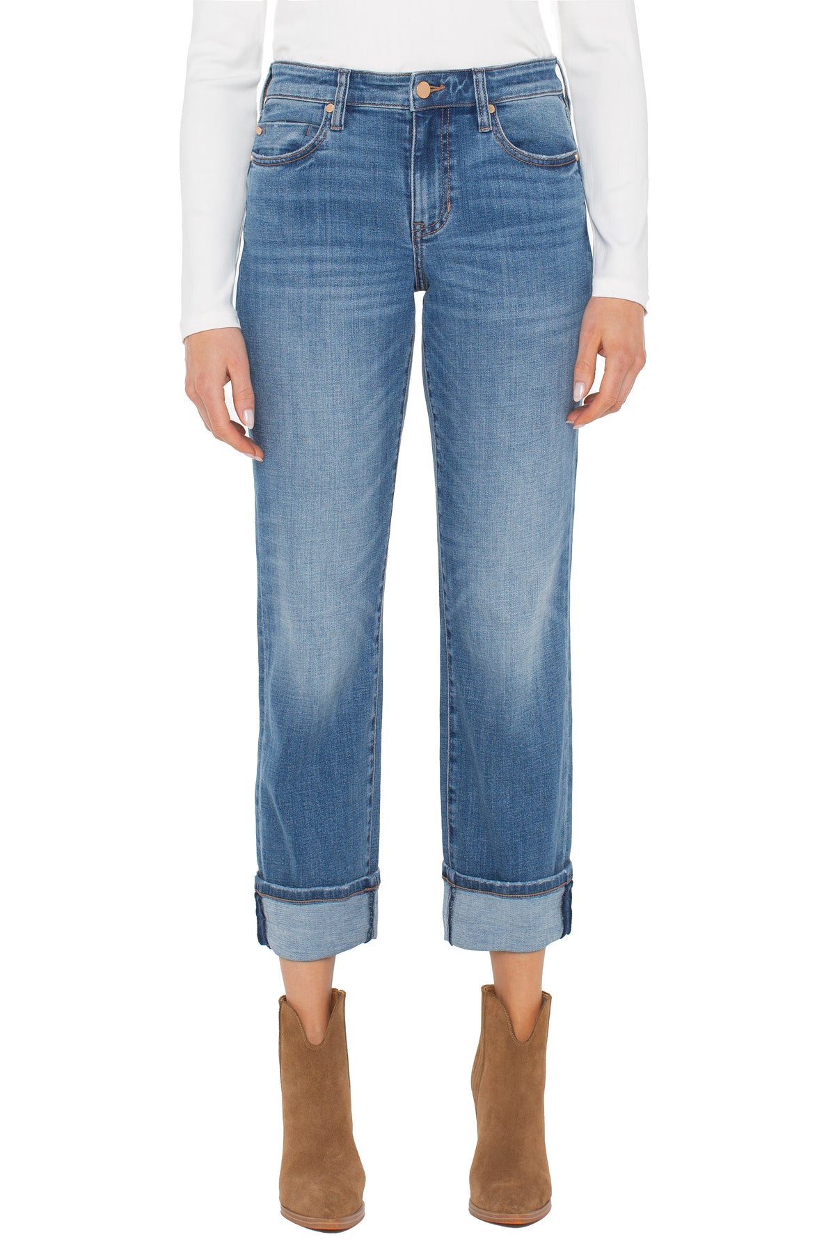 The Marley is our signature girlfriend jean with a beautiful silhouette. Fits slimmer than a boyfriend but gives you the perfect amount of leg-room. A wide cuff on our girlfriend jean shows off your fabulous footwear. Our vintage denim adds just the right amount of tasteful destruction.
