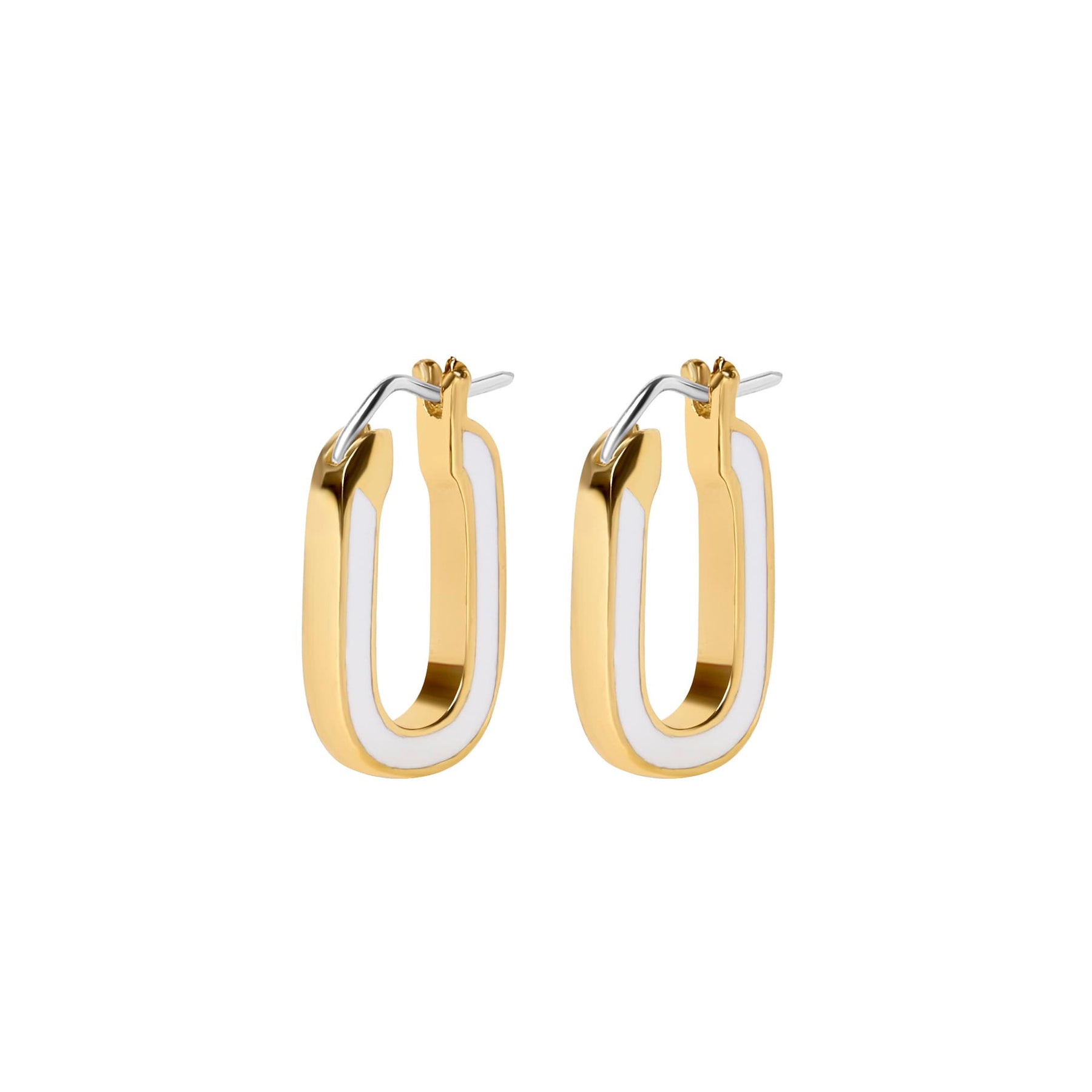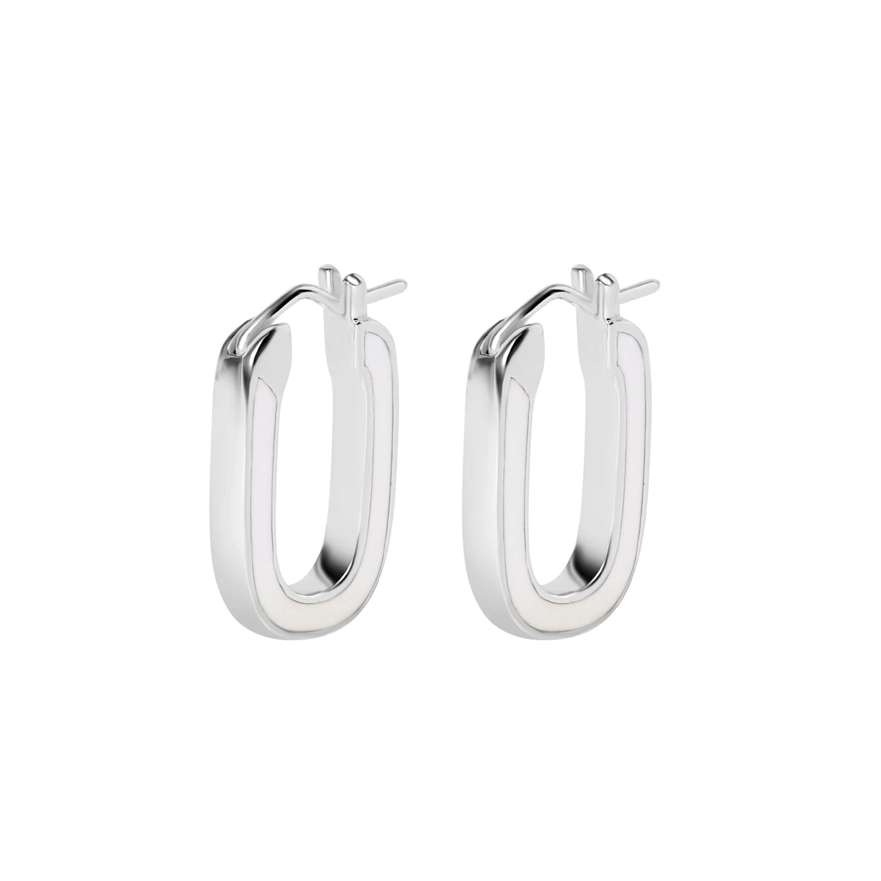 • Design: Rectangular resin-filled hoops with secure latch-back closure