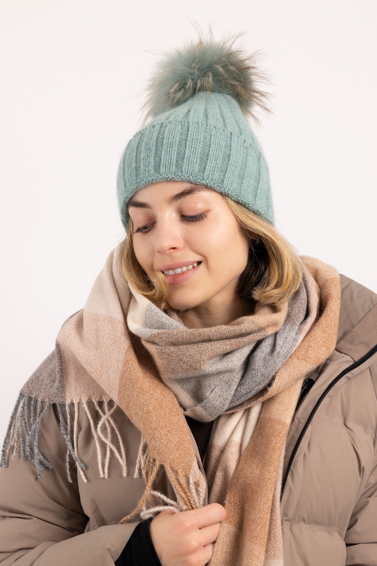Featuring a real raccoon fur pom pom that’s removable for easy care and versatile styling, the Jennifer Laura Hat combines cozy comfort with elevated elegance. Its soft rib-knit design and charming heart pattern make it both playful and sophisticated — perfect for those who want to stay warm while looking effortlessly chic.
