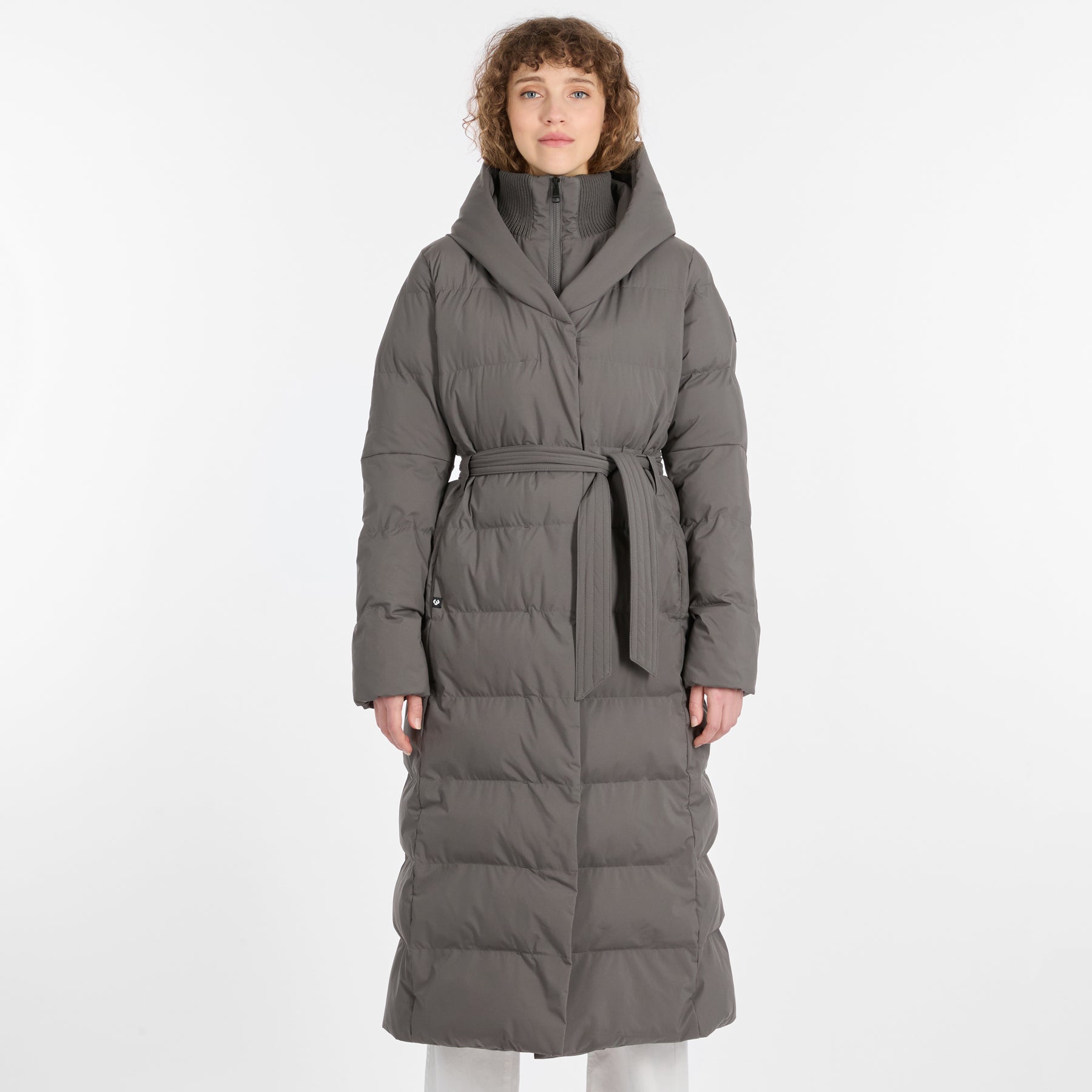 The NIANI LONG vegan quilted coat by ragwear combines timeless design with cozy warmth. Its thick padding keeps you reliably warm in cold weather, while the wide fabric belt highlights your waist and creates a feminine silhouette. The high ribbed collar and large hood offer extra protection against wind and cold. Elastic cuffs and side slit pockets add comfort and practicality, making this coat a perfect companion for winter days.