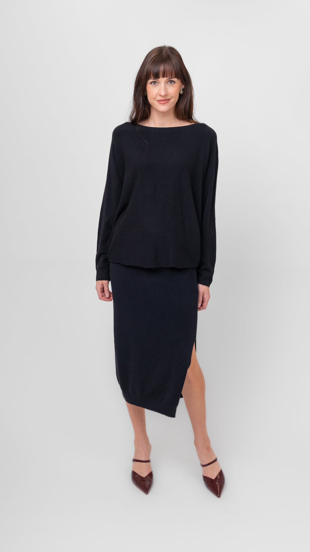 🖤✨ Sleek, stretchy, and just a little bit sassy, the Lidia skirt is your effortlessly polished bestie. That midi length? Classy. The side slit? A cheeky wink. It's a soft, body-skimming knit that moves with you—whether you’re strutting through the office or sipping wine under fairy lights.